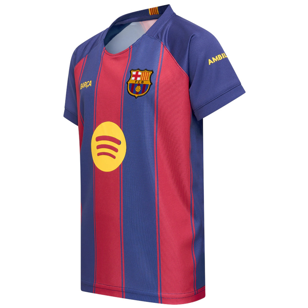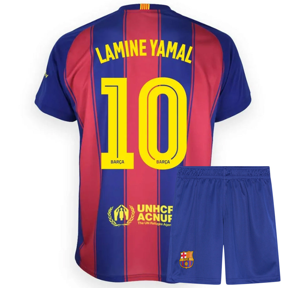 Vous cherchez une tenue complète de football du FC Barcelone pour enfants ? Ce maillot domicile 2025-2026 avec l'impression de Lamine Yamal et le numéro 10 est le choix idéal pour les jeunes fans du Barça. La tenue se compose d'un maillot et d'un short, réalisés dans les couleurs classiques bleu et rouge du club.