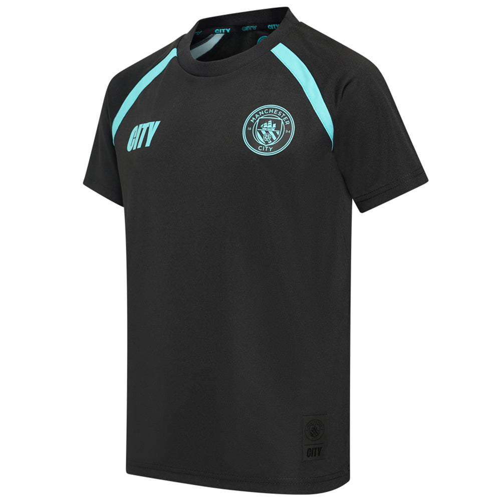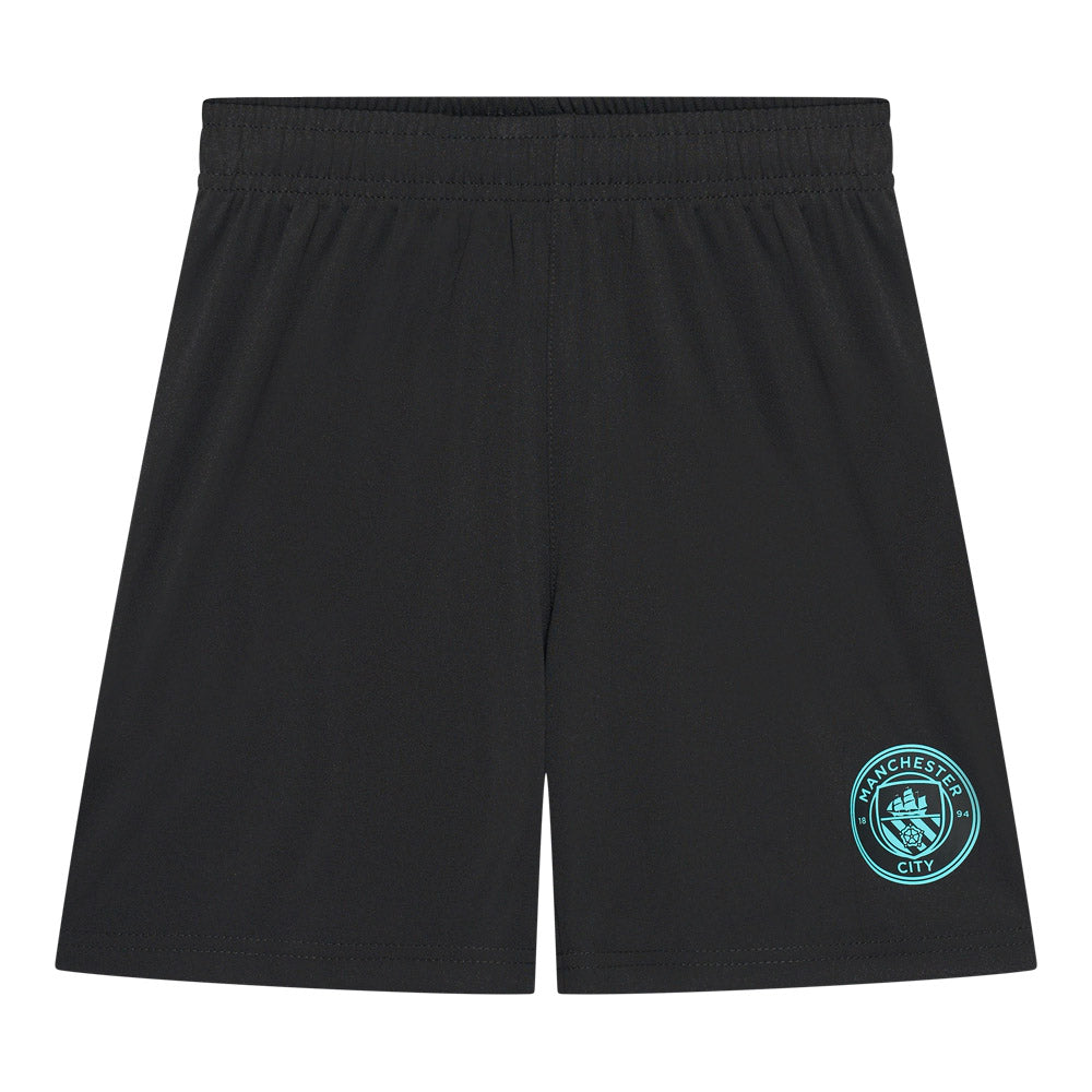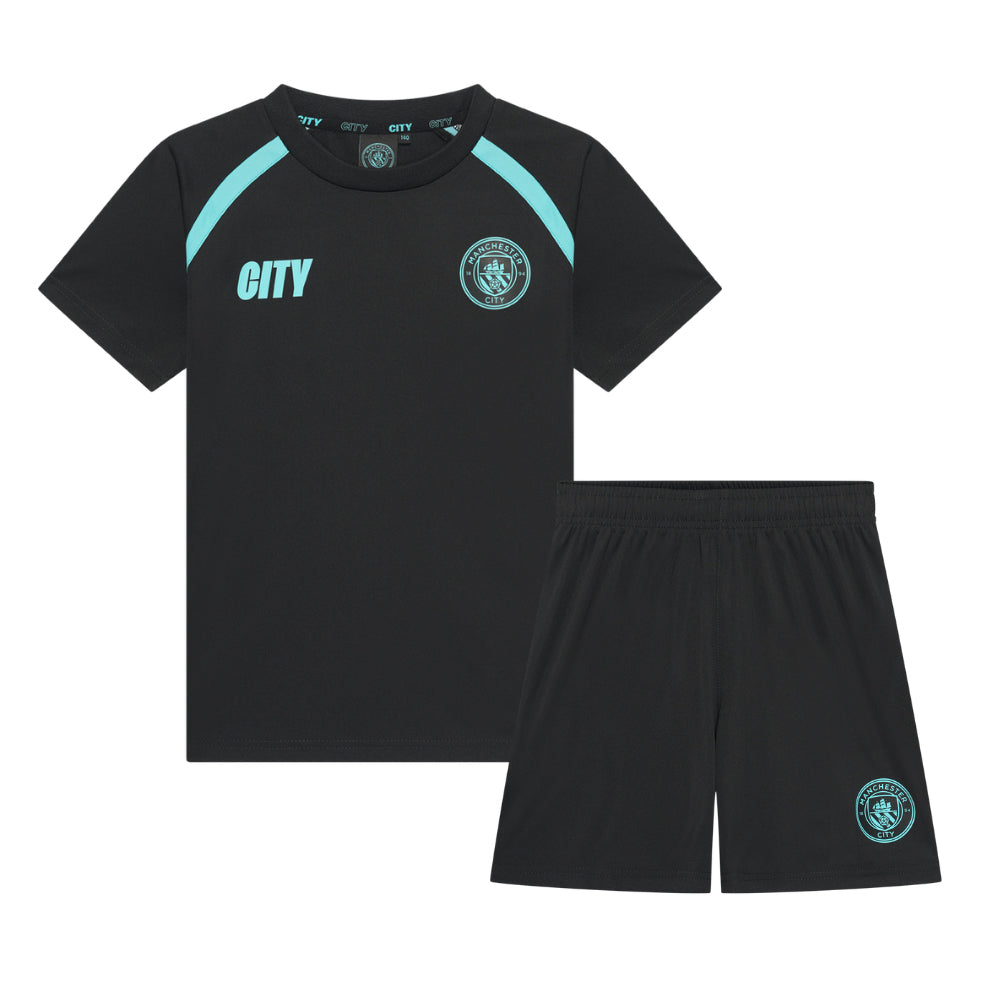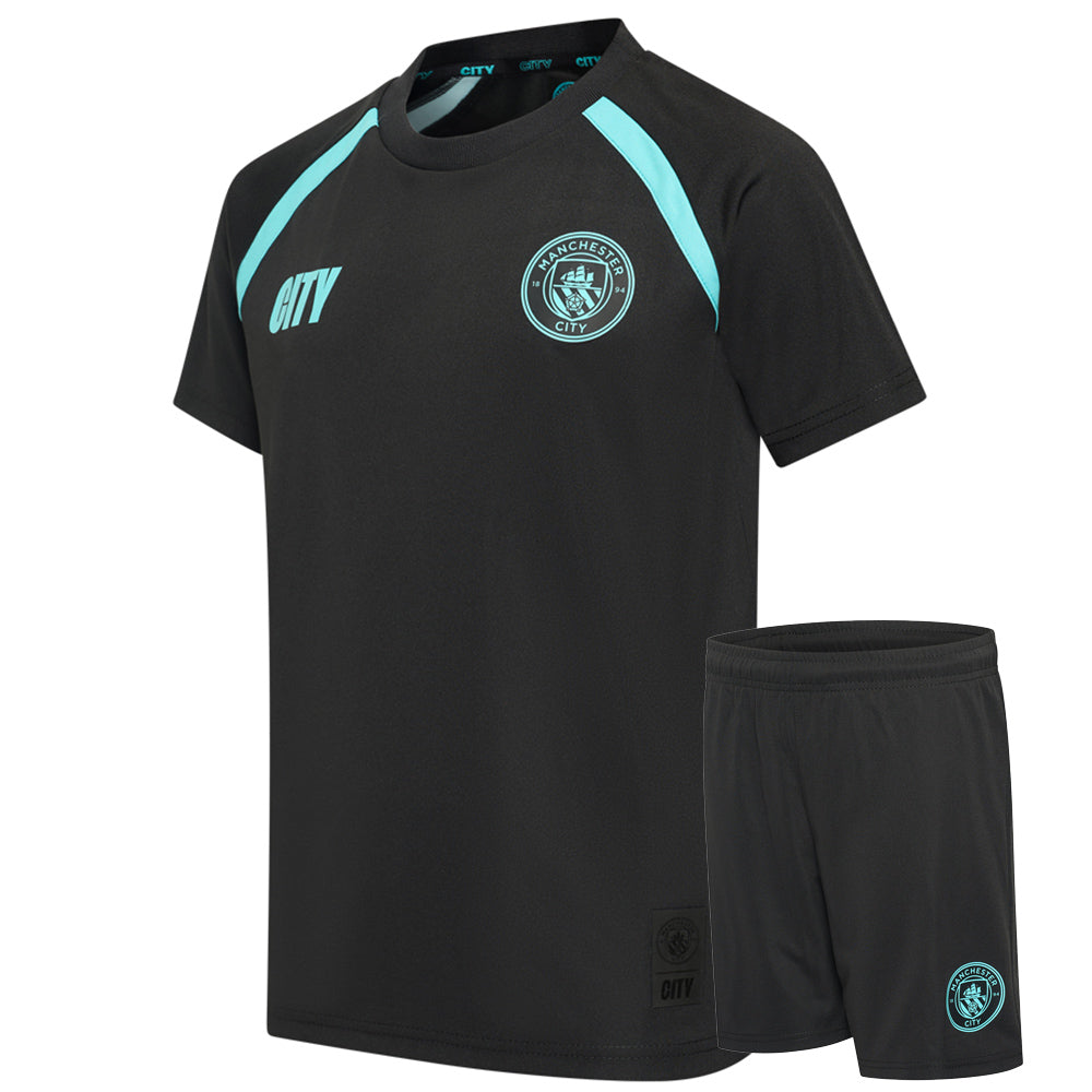 La tenue se compose d'un maillot confortable et d'un short assorti, tous deux ornés du logo reconnaissable de Manchester City et de l'inscription « CITY ». Que vous jouiez au football sur le terrain, que vous jouiez dehors ou que vous suiviez vos héros pendant le match : vous serez toujours bien équipé.