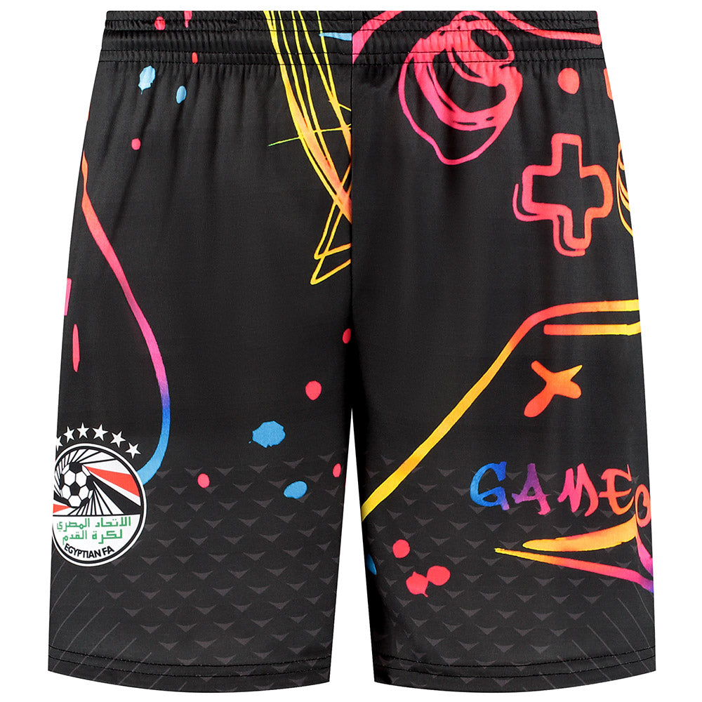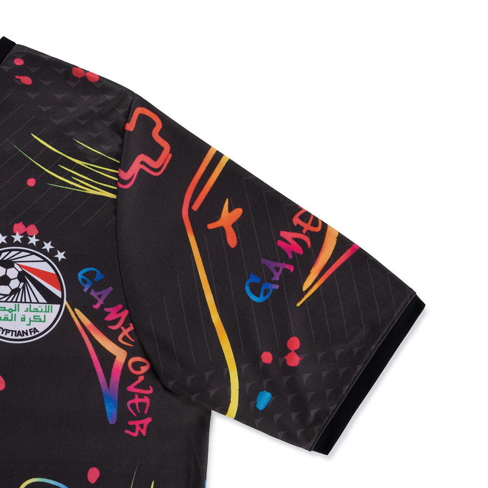 Val op met dit spectaculaire Egypte voetbaltenue in de speciale Gaming Editie, voorzien van de naam en het rugnummer van Mohamed Salah (10). Het unieke ontwerp met kleurrijke game-elementen maakt dit tenue een must-have voor elke voetballende gamer en echte Salah-fan.