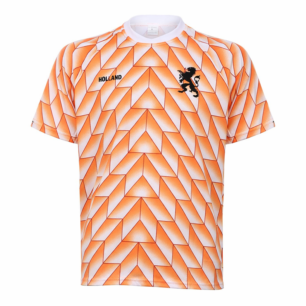 Het Europese Kampioenschap voetbal 1988 was de eerste en tot dusver enige Europese titel voor het Nederlands Elftal. Het mooie vintage shirt van toen is een prachtig shirt voor diegene die net even op zoek is naar iets anders. Het voetbalshirt heeft een fijne pasvorm en is gemaakt van 100% polyester. Ook dit voetbalshirt kan bedrukt worden met een naam en rugnummer naar eigen keuze.