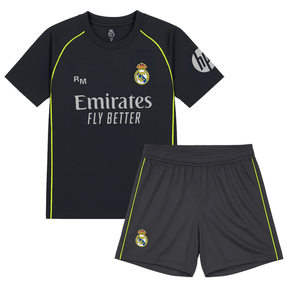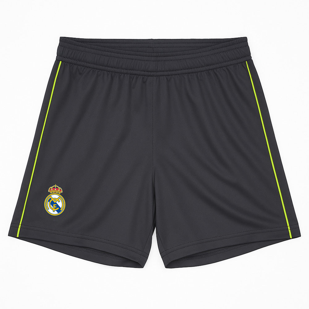 ✔ Seizoen 2025/2026 design – Donkergrijs shirt en short met frisse neon accenten.