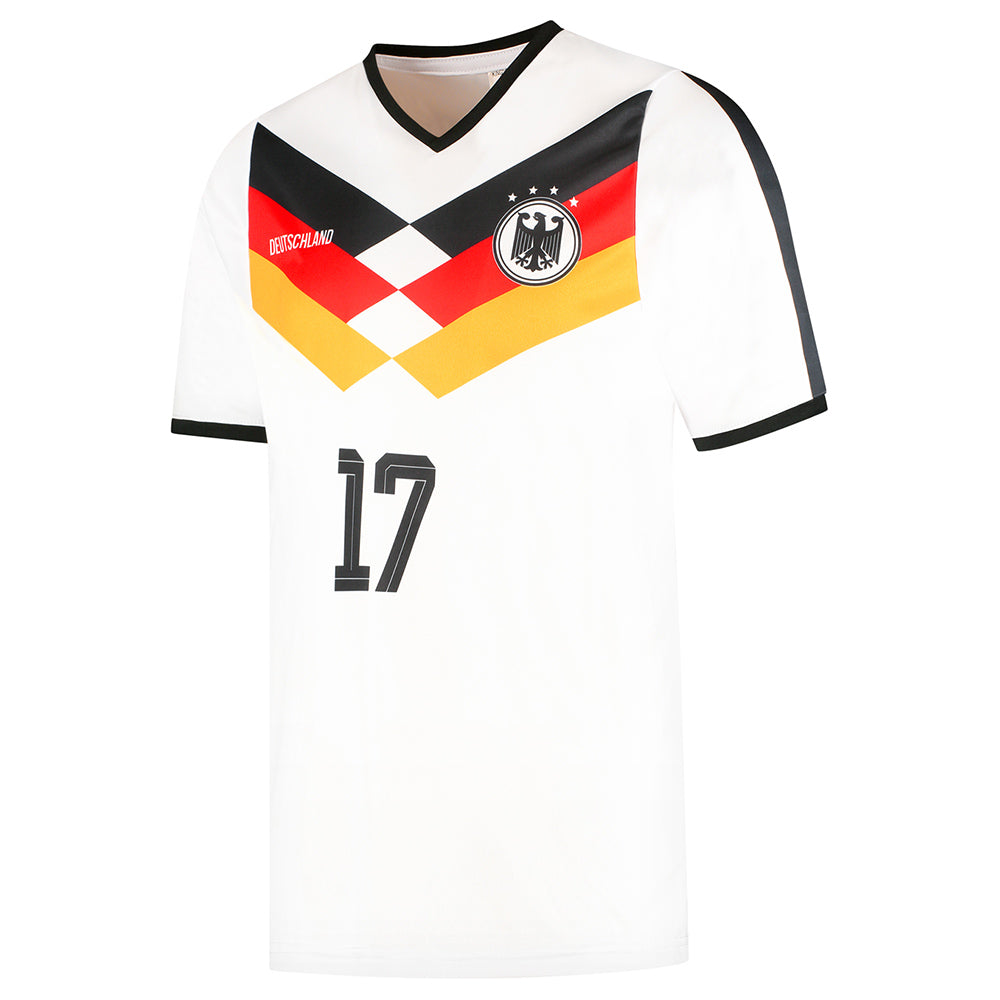 Droom jij ervan om te spelen zoals Florian Wirtz? Met dit Duitsland Wirtz voetbaltenue draag je niet alleen de iconische kleuren, maar ook de energie van een van de grootste talenten van het Duitse voetbal. Het frisse witte shirt met de zwart-rood-gele borstband en het nummer 17 maakt dit tenue meteen herkenbaar én bijzonder.